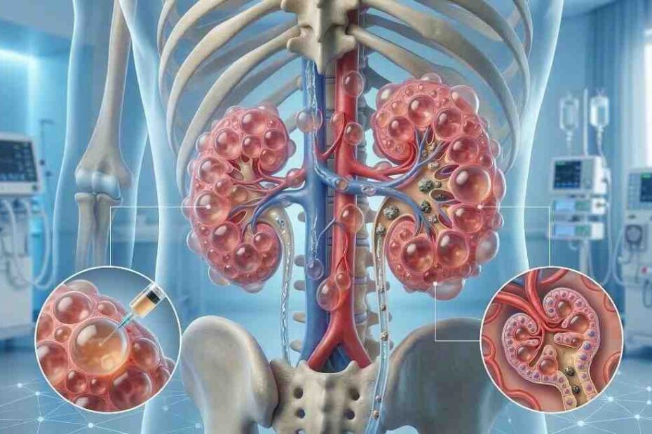 Polycystic Kidney Disease is a genetic disorder where fluid-filled cysts develop in the kidneys, gradually enlarging them and reducing kidney function over time.